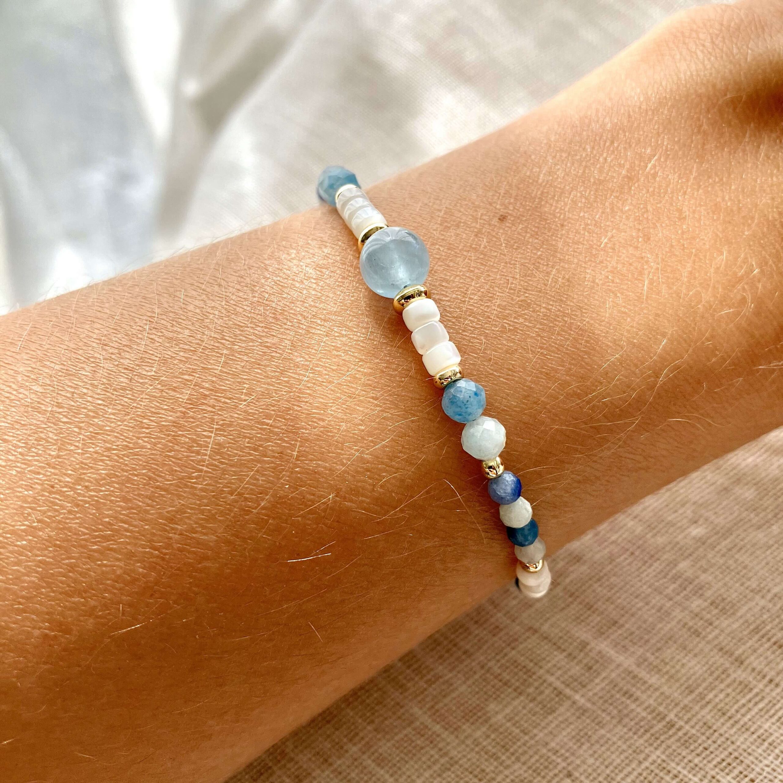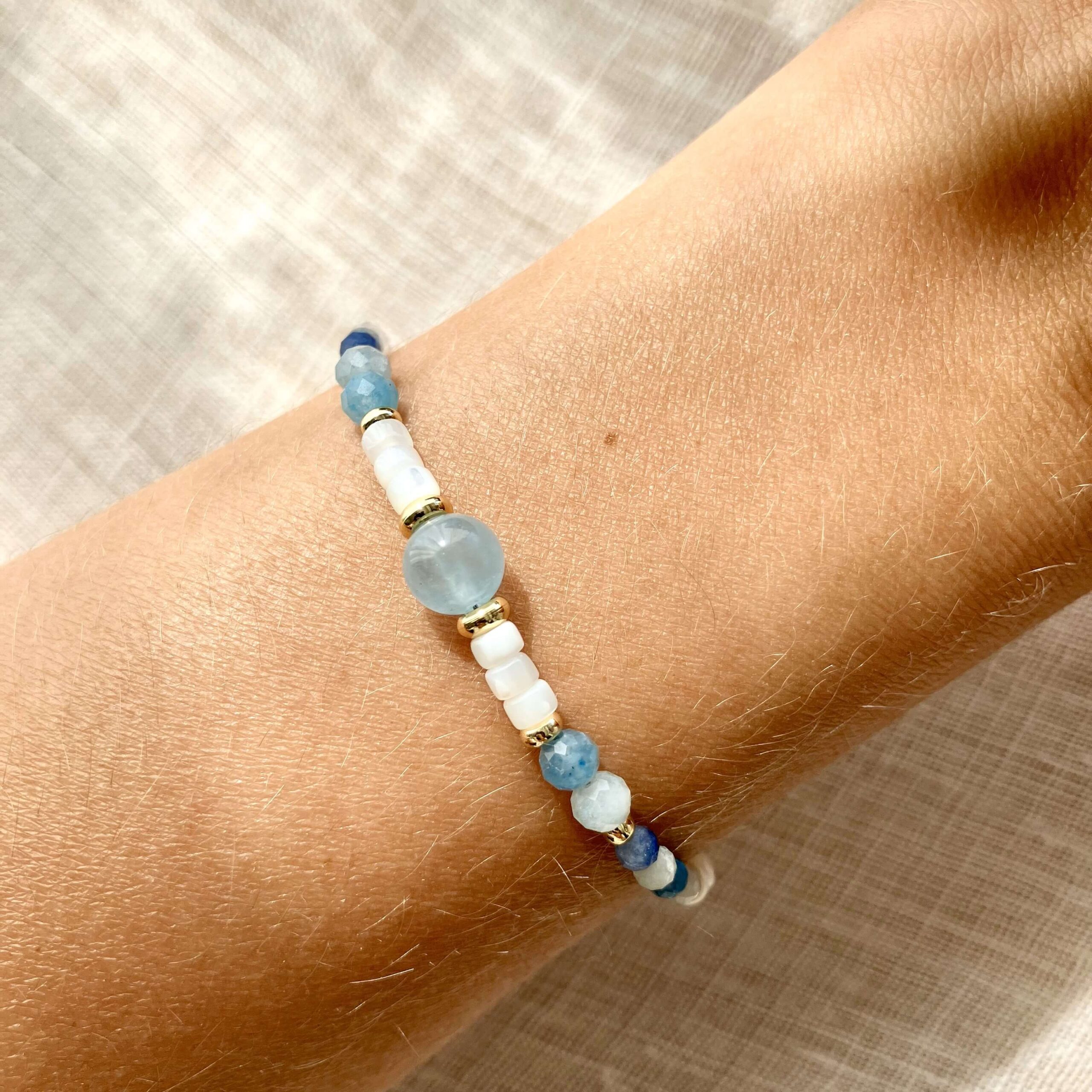 Bransoletka Anu z akwamarynem i masą perłową