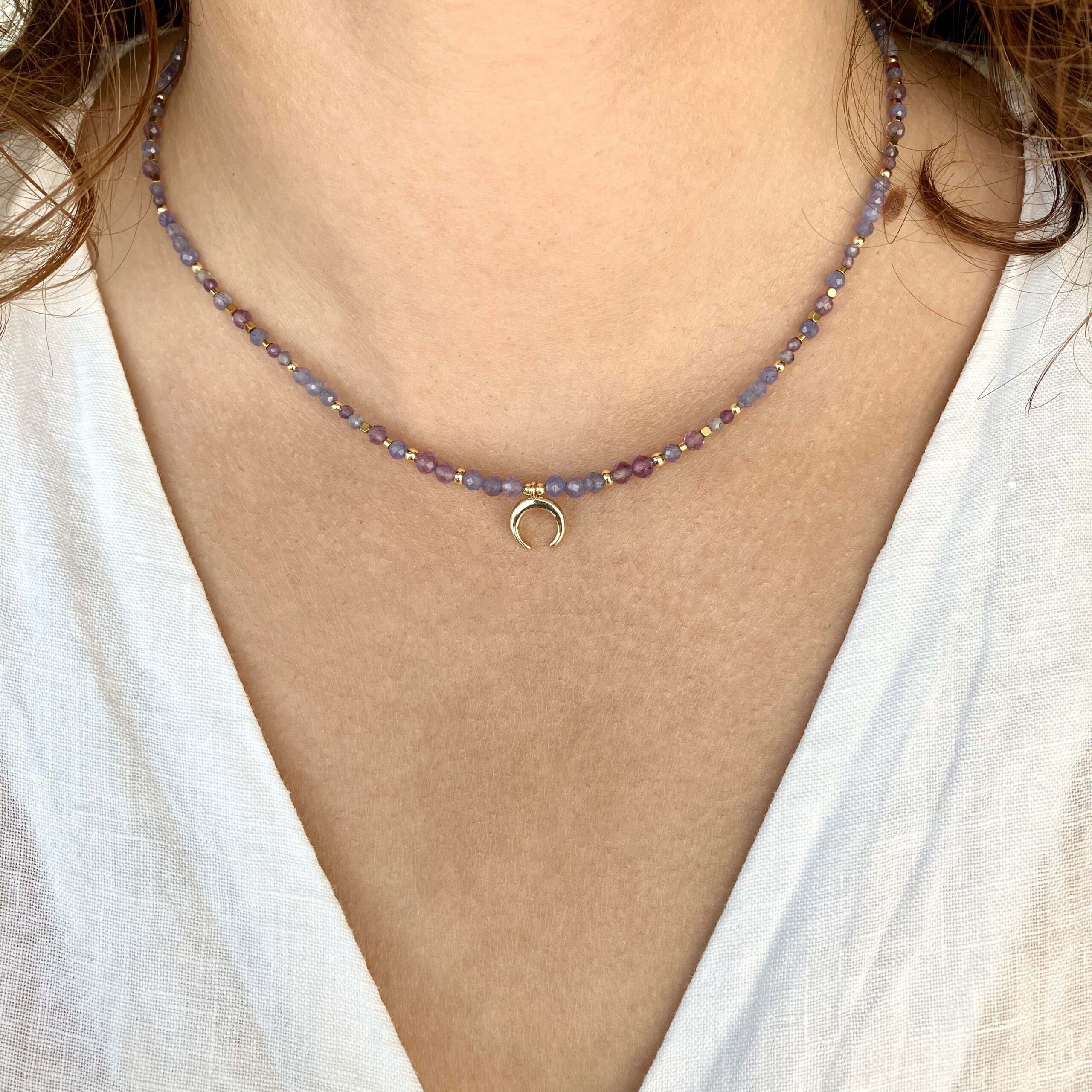 - zawieszka z Lunulą, słowiańskim amuletem ochronnym – symboem kobiecej mocy i jej połączenia z naturą oraz księżycowym cyklem,