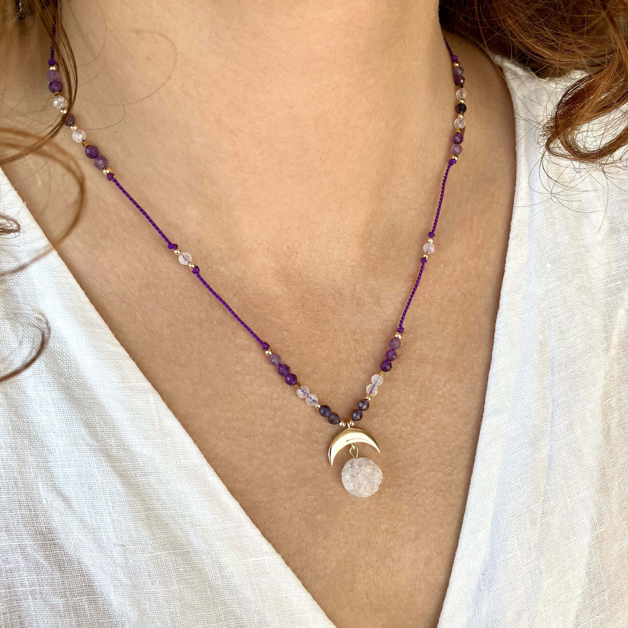 - zawieszka z druza agatową pokryta jest tlenkami metalu dającymi efekt zorzy polarnej, mieni się magicznie kolorami w zależności od kąta padania światła,