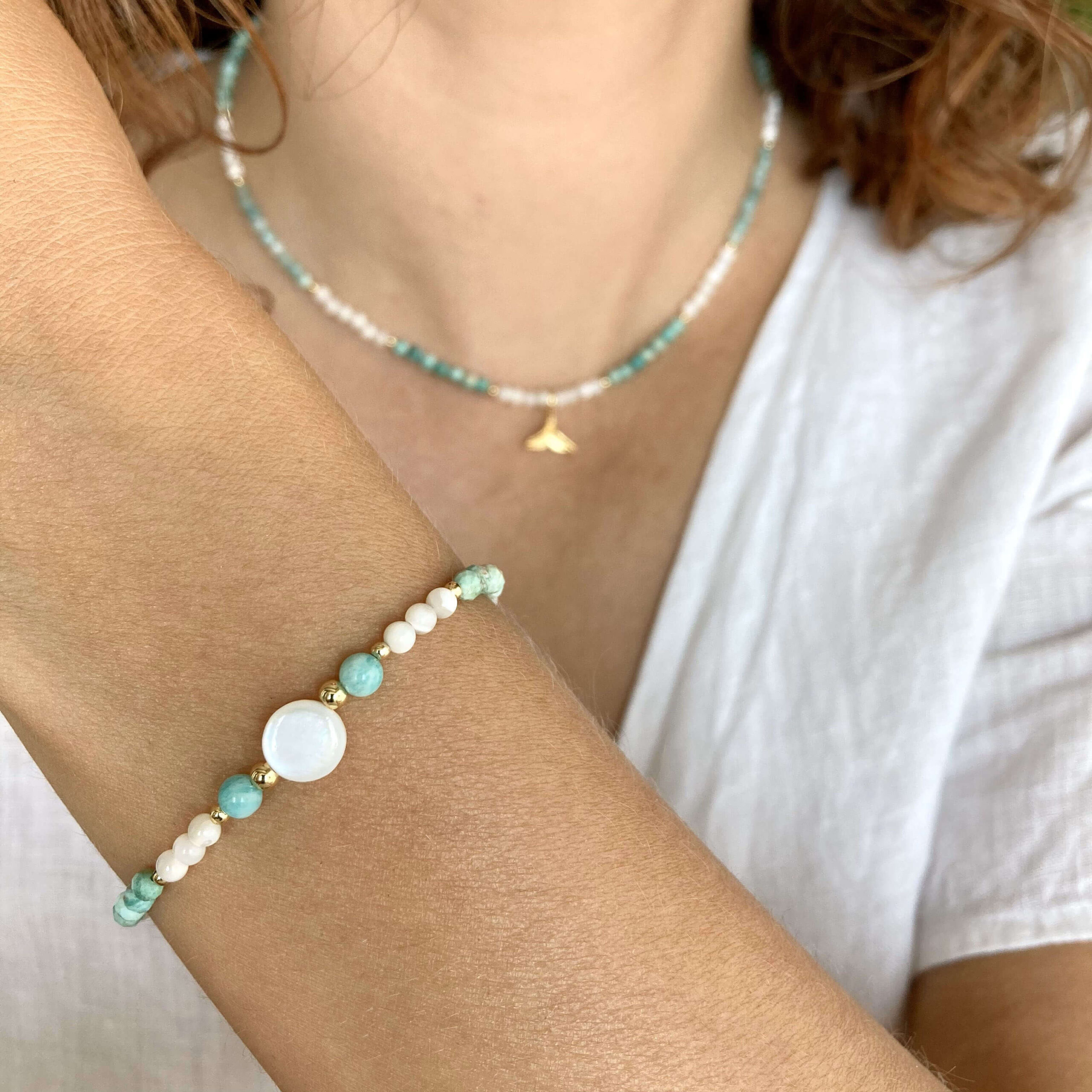 - fasetowane koraliki z kamienia pięknie odbijają światło, dając migoczący, świetlisty efekt,