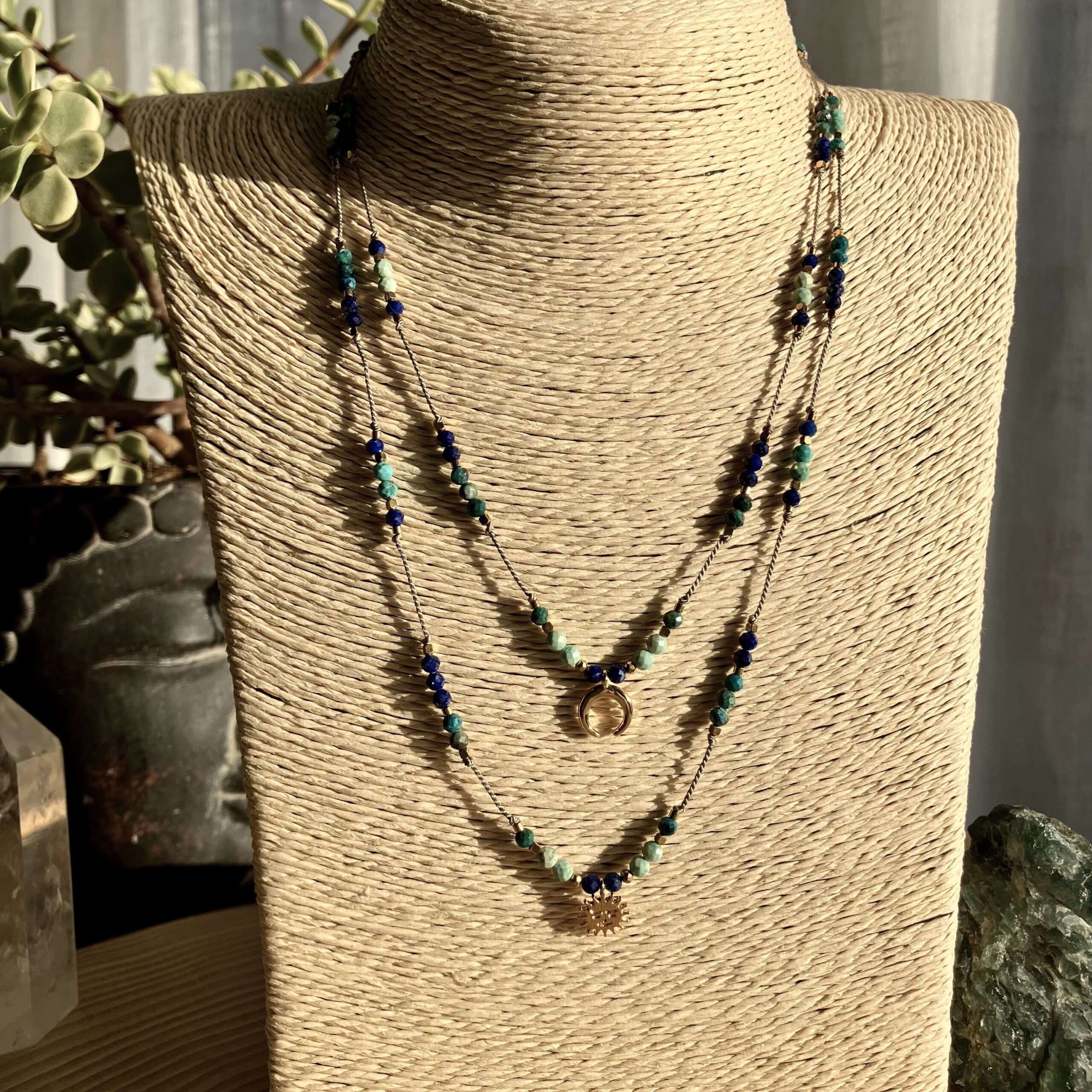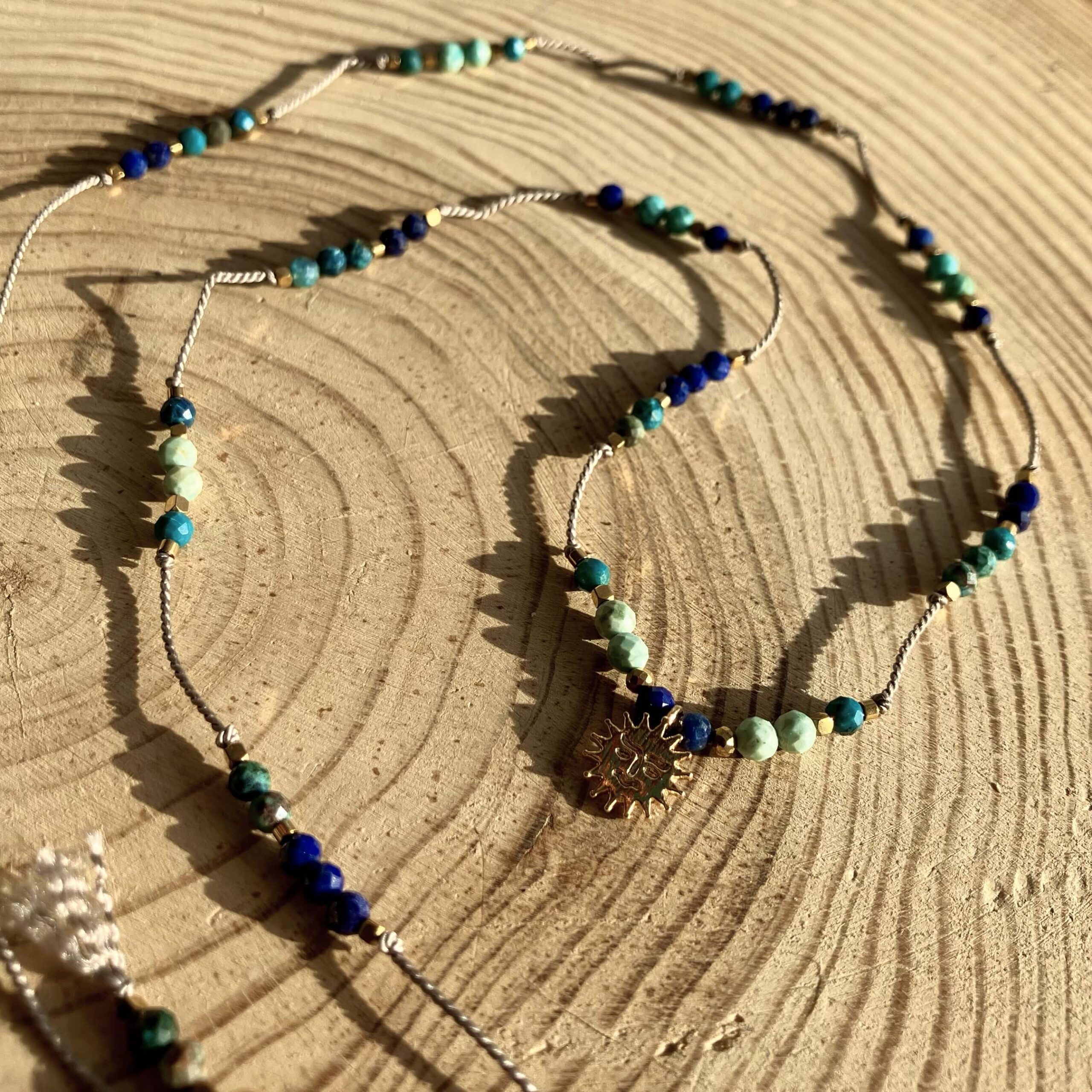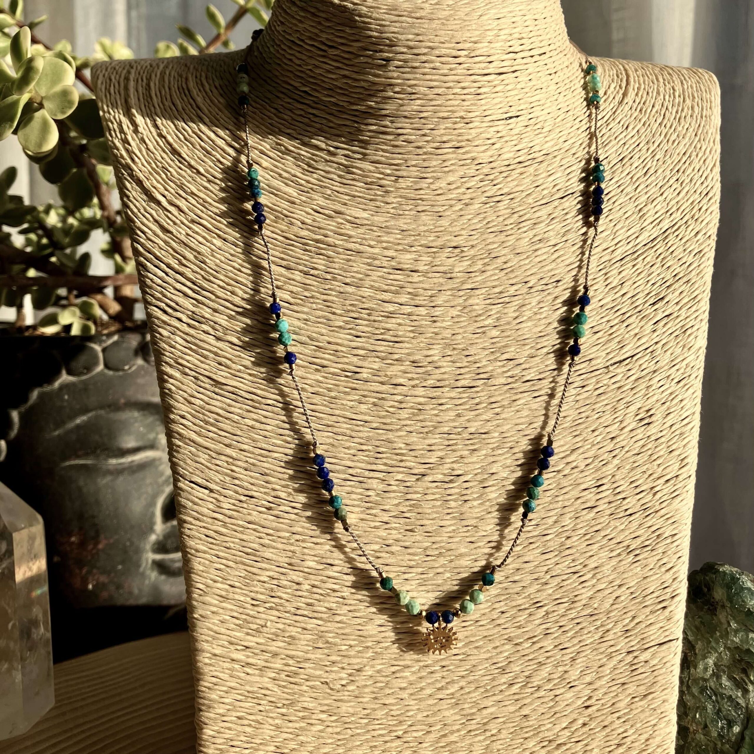 Naszyjnik z turkusem, lapis lazuli i chryzokolą