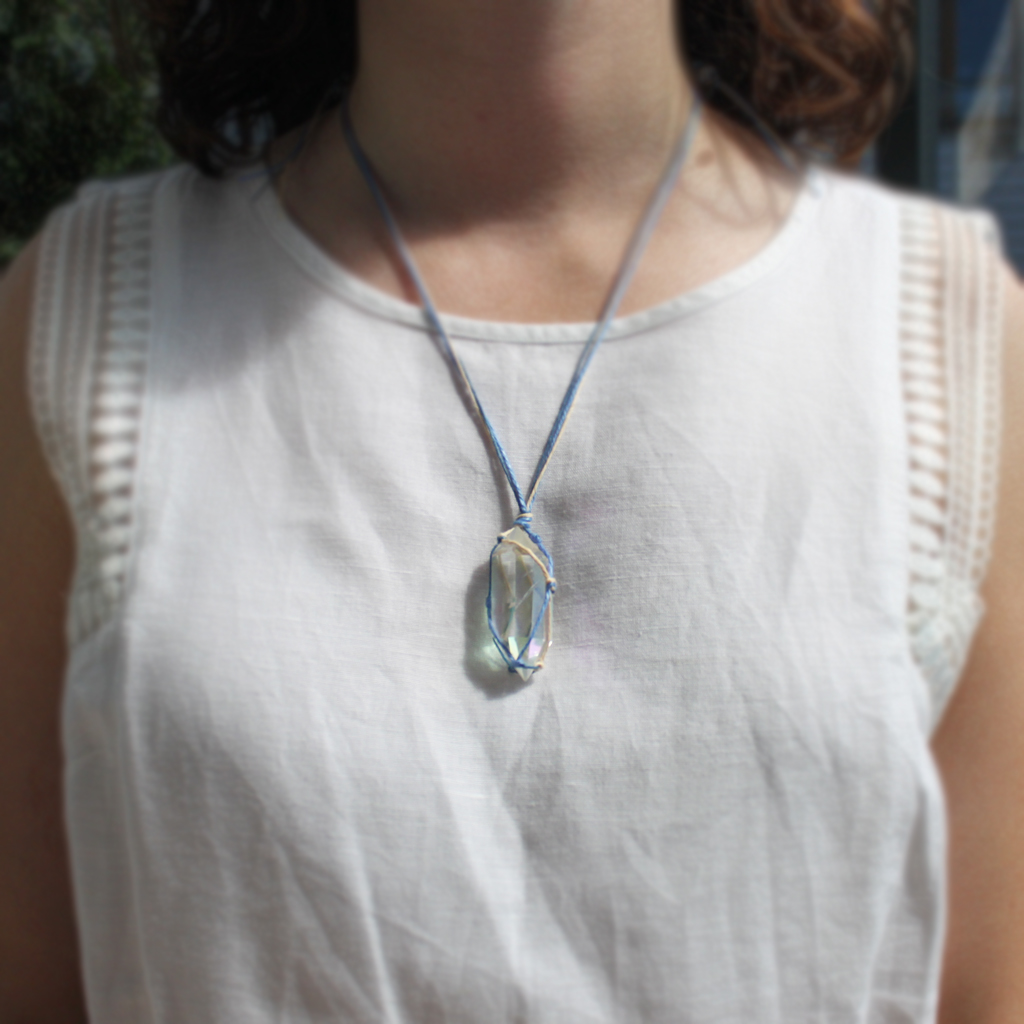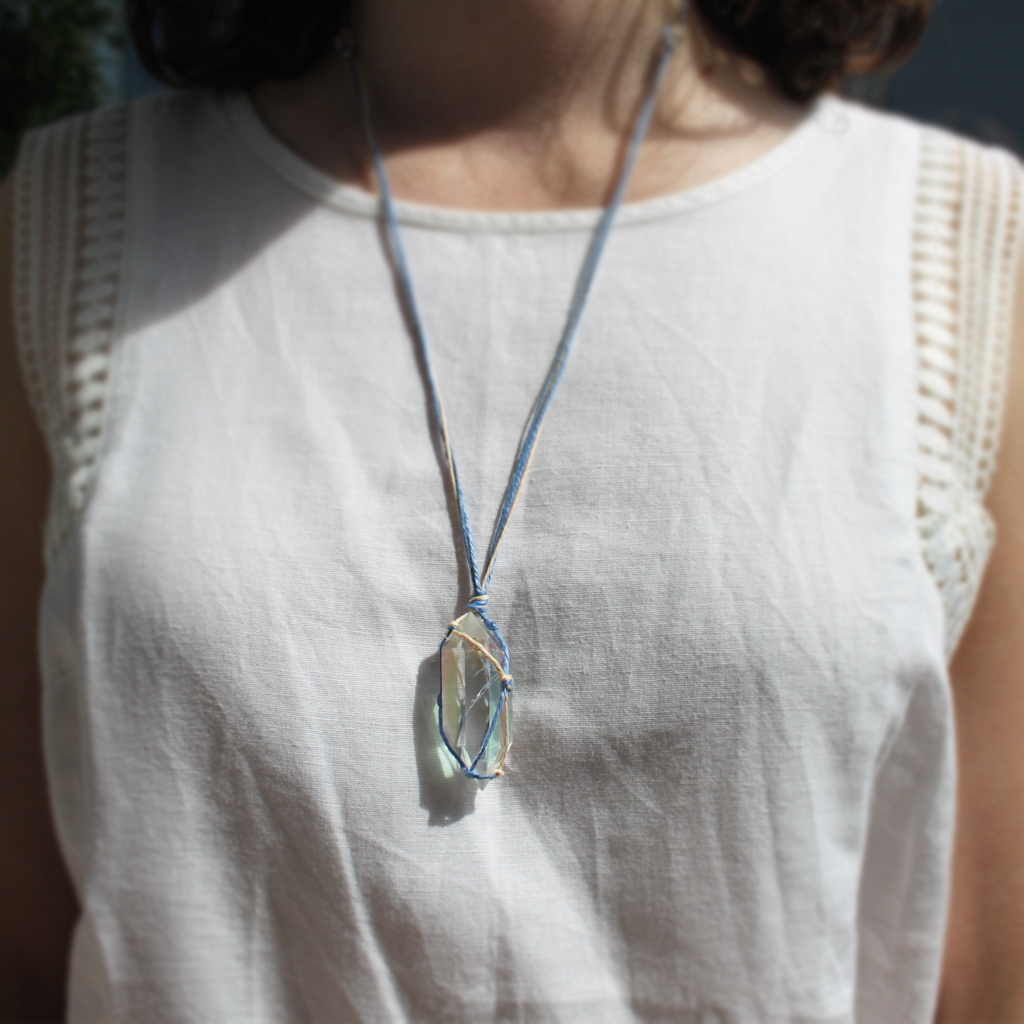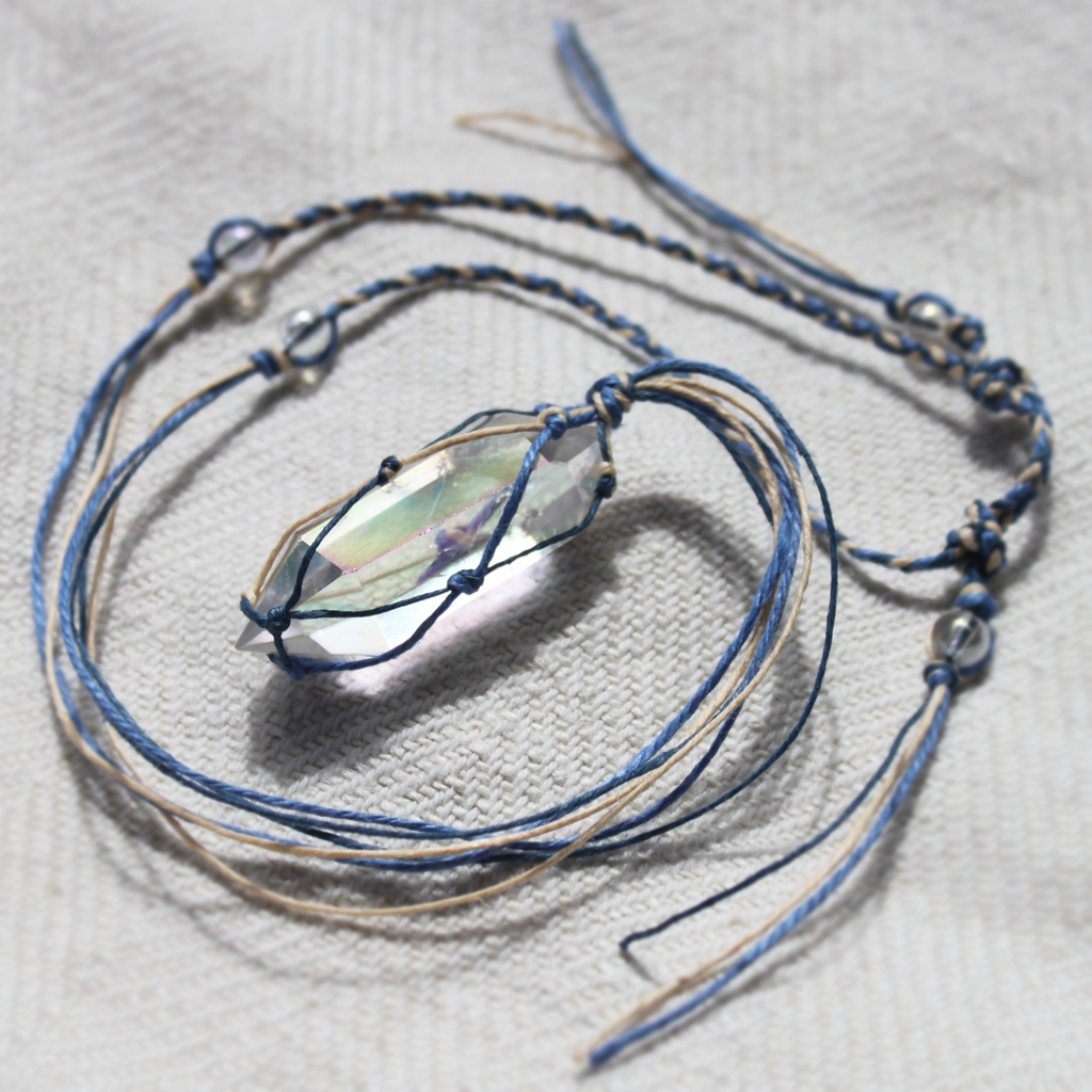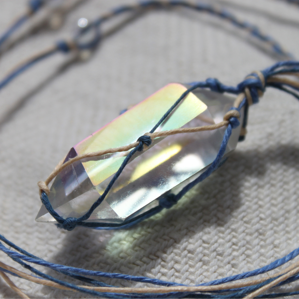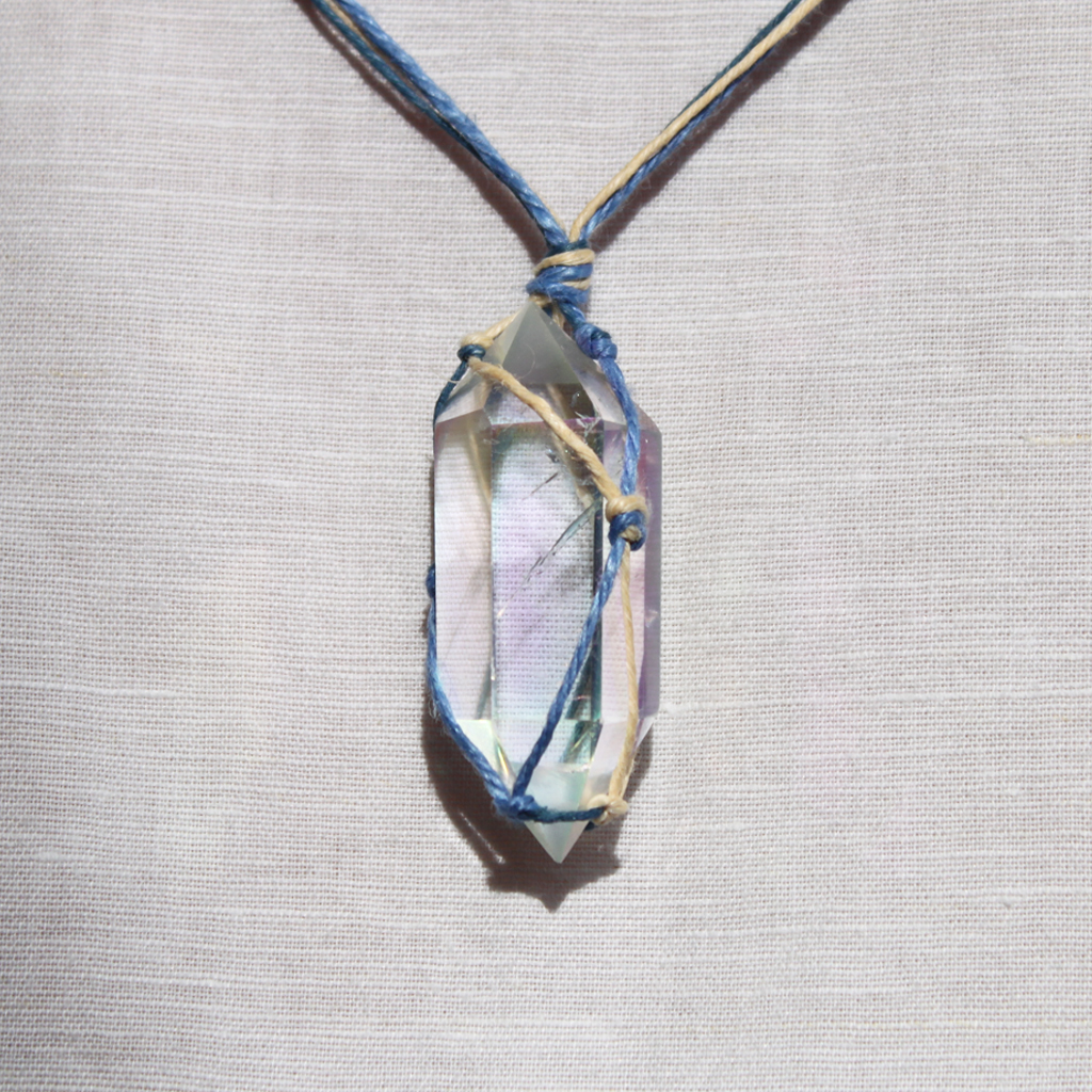 Naszyjnik lniany Aaravi z kryształem górskim aurycznym