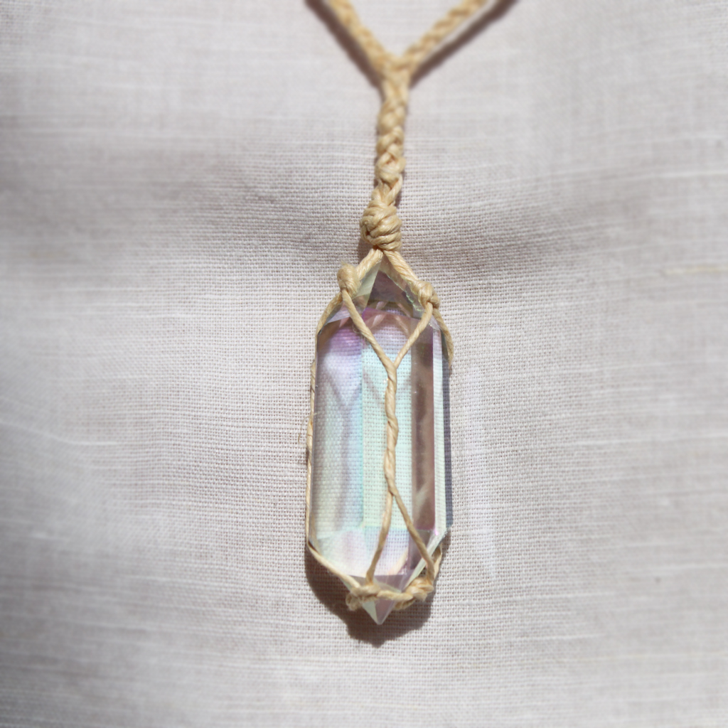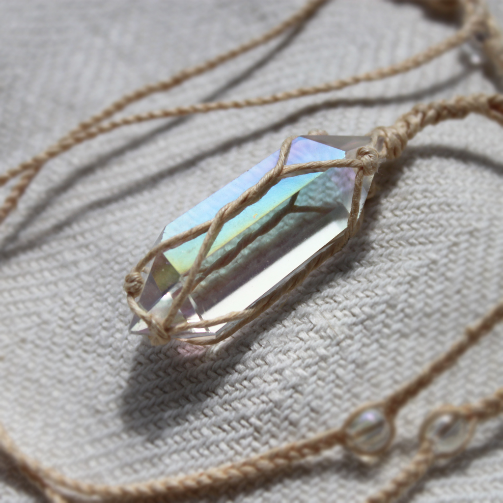- obelisk i koraliki pokryte „anielską aurą” – warstwą platyny i srebra, stąd kolorowo połyskują zależnie od kąta padania światła,