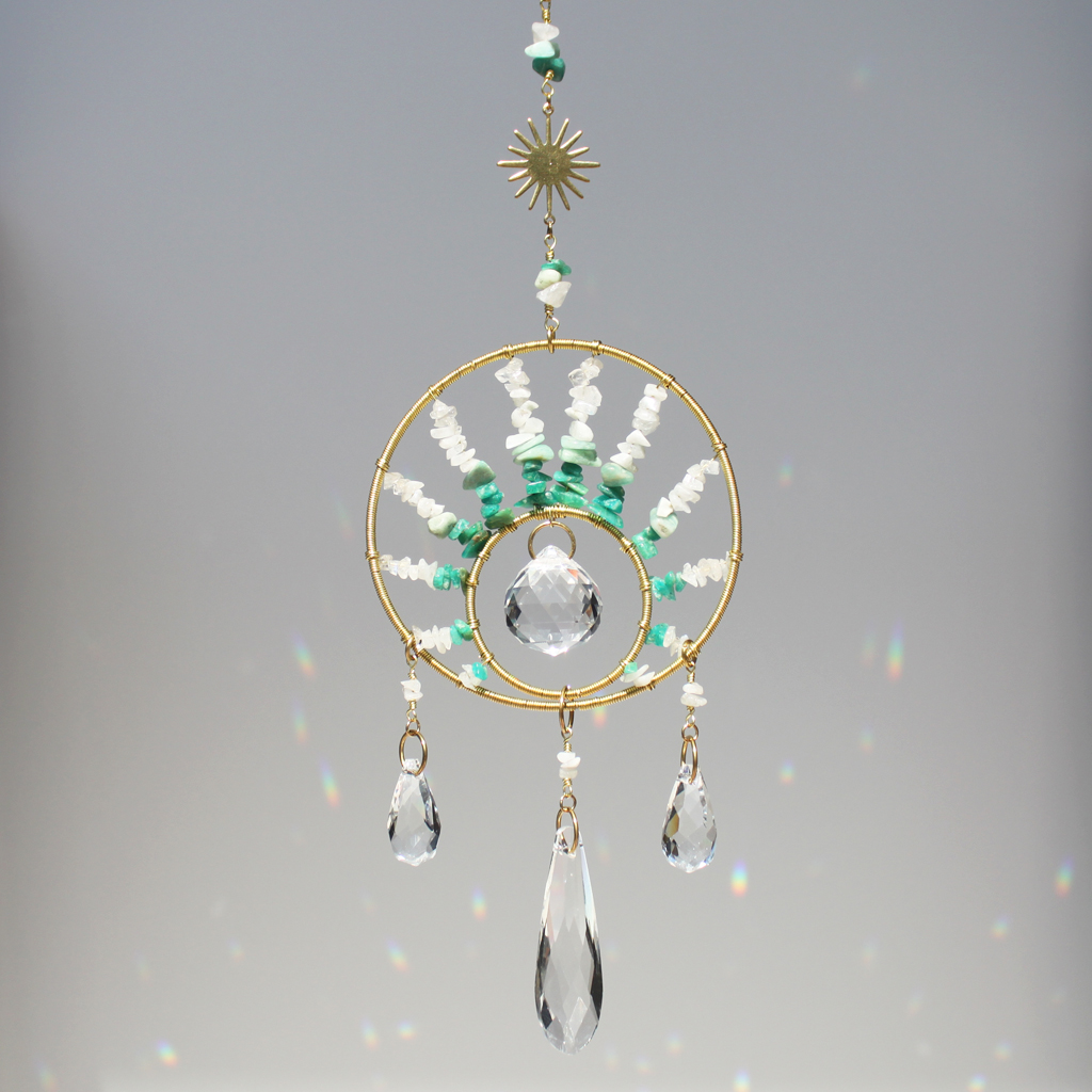 Słońce to życiodajna siła mająca bezpośredni wpływ na nasze samopoczucie i zdrowie. Łatwo zauważyć, że to właśnie w miejscach dobrze nasłonecznionych czujemy się lepiej, pozytywniej, mamy więcej energii i chęci do działania. Stąd warto zadbać o rozświetlenie naszej przestrzeni i zaproszenie do niej słonecznej energii. W tym celu może nam pomóc łapacz słońca z kryształem, który umieszczony w oknie w ekspozycji na światło słoneczne rozszczepi je na piękne, tęczowe punkty świetlne. Stając się nośnikiem iluminacji Słońca wypełni wnętrze subtelną promiennością, zapewniając magiczny pokaz świetlny, na którym będzie można nie raz zawiesić oko 😊