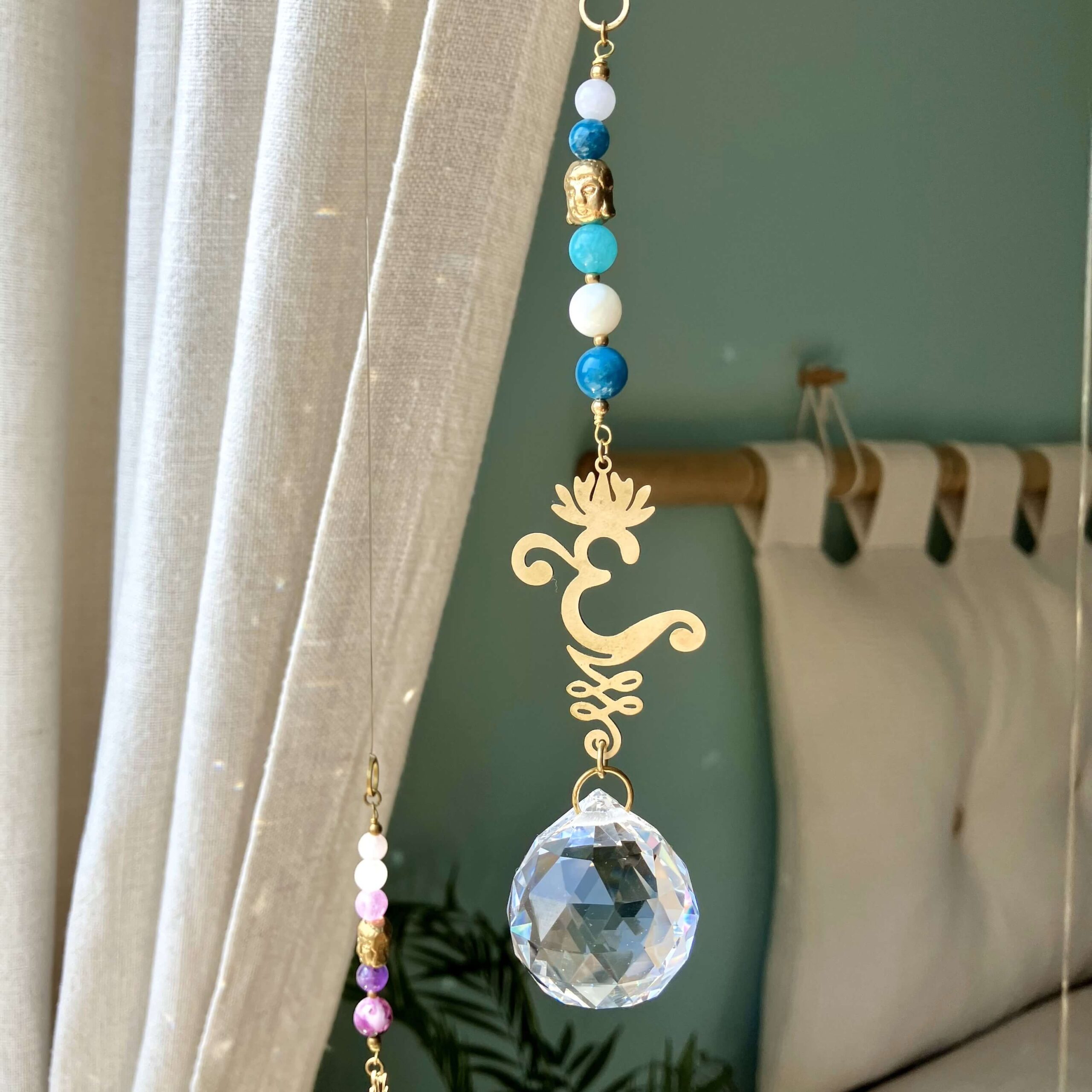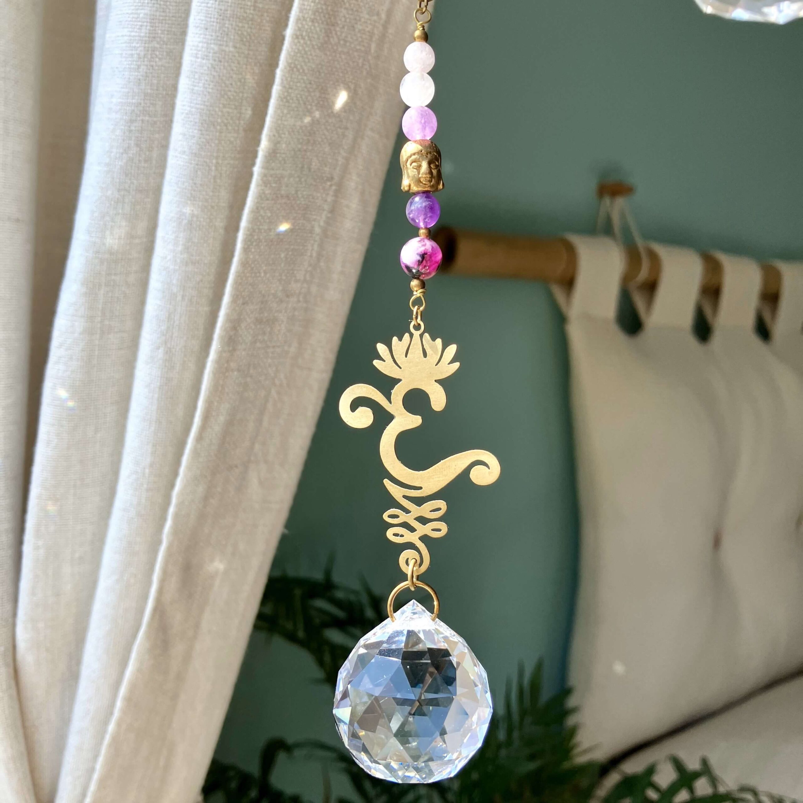 Słońce to życiodajna siła mająca bezpośredni wpływ na nasze samopoczucie i zdrowie. Łatwo zauważyć, że to właśnie w miejscach dobrze nasłonecznionych czujemy się lepiej, pozytywniej, mamy więcej energii i chęci do działania. Stąd warto zadbać o rozświetlenie naszej przestrzeni i zaproszenie do niej słonecznej energii. W tym celu może nam pomóc łapacz słońca z kryształem, który umieszczony w oknie w ekspozycji na światło słoneczne rozszczepi je na piękne, tęczowe punkty świetlne. Stając się nośnikiem iluminacji Słońca wypełni wnętrze subtelną promiennością, zapewniając magiczny pokaz świetlny, na którym będzie można nie raz zawiesić oko 😊