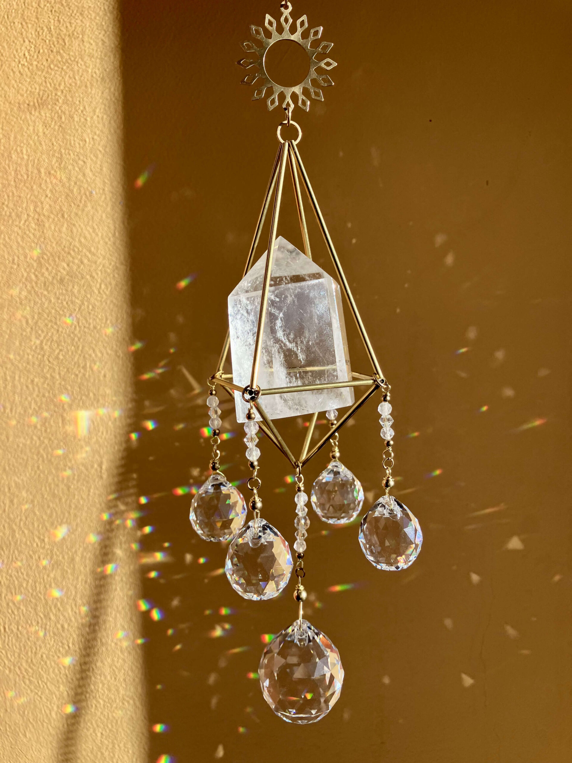 Słońce to życiodajna siła mająca bezpośredni wpływ na nasze samopoczucie i zdrowie. Łatwo zauważyć, że to właśnie w miejscach dobrze nasłonecznionych czujemy się lepiej, pozytywniej, mamy więcej energii i chęci do działania. Stąd warto zadbać o rozświetlenie naszej przestrzeni i zaproszenie do niej słonecznej energii. W tym celu może nam pomóc łapacz słońca z kryształem, który umieszczony w oknie w ekspozycji na światło słoneczne rozszczepi je na piękne, tęczowe punkty świetlne. Stając się nośnikiem iluminacji Słońca wypełni wnętrze subtelną promiennością, zapewniając magiczny pokaz świetlny, na którym będzie można nie raz zawiesić oko 😊